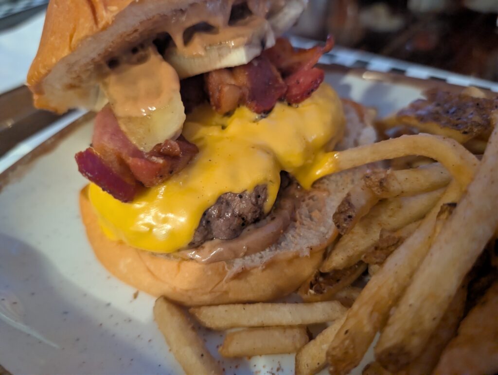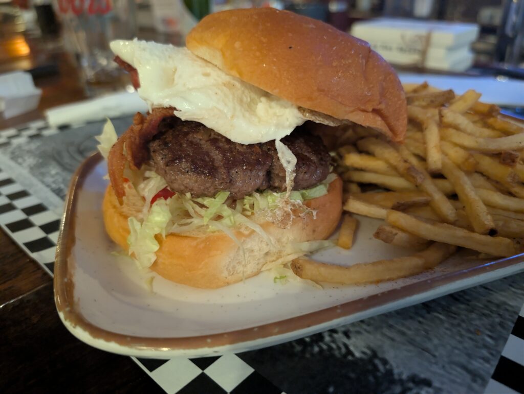 - The TK Burger (Brody’s Order): Brody ordered the TK burger and loved it. It was expertly made, with the rich flavors of bacon and egg playing perfectly with their signature house-made “oak sauce.”