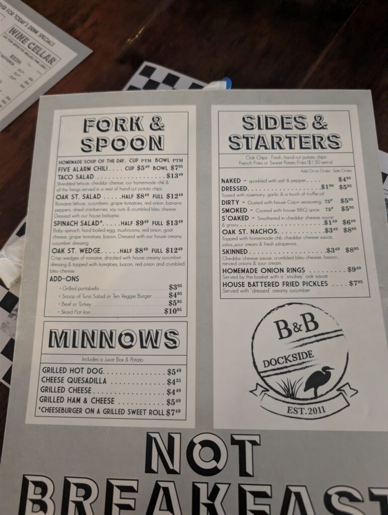 While we went for dinner, I took a peek at their breakfast menu and it looks incredible—definitely something to keep in mind for your morning coffee runs. The dinner menu is highly focused, featuring a lot of incredibly fun, elevated takes on classic burgers and hot dogs.