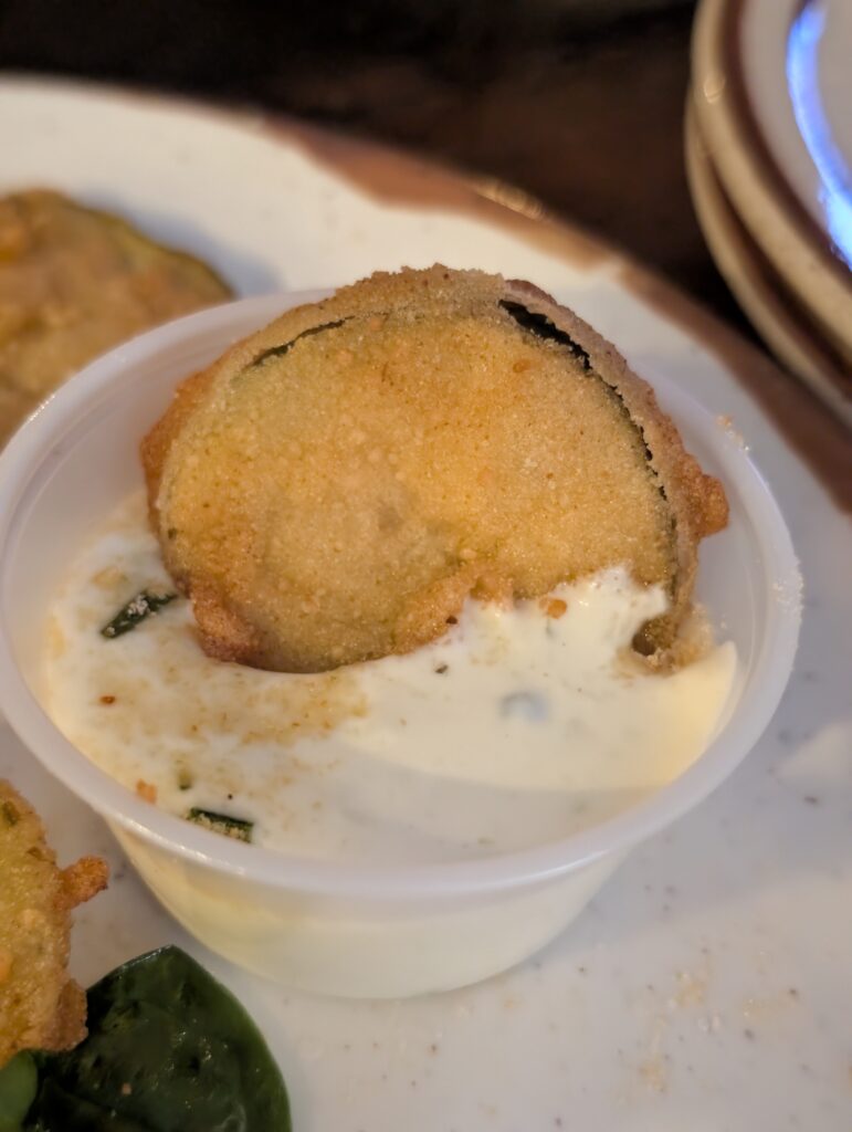- The Appetizer: We started with the Fried Pickles. They came out piping hot with a perfectly crisp breading and a delightful, tangy flavor. They were served with a delicious dipping sauce that tasted like a house-made ranch.