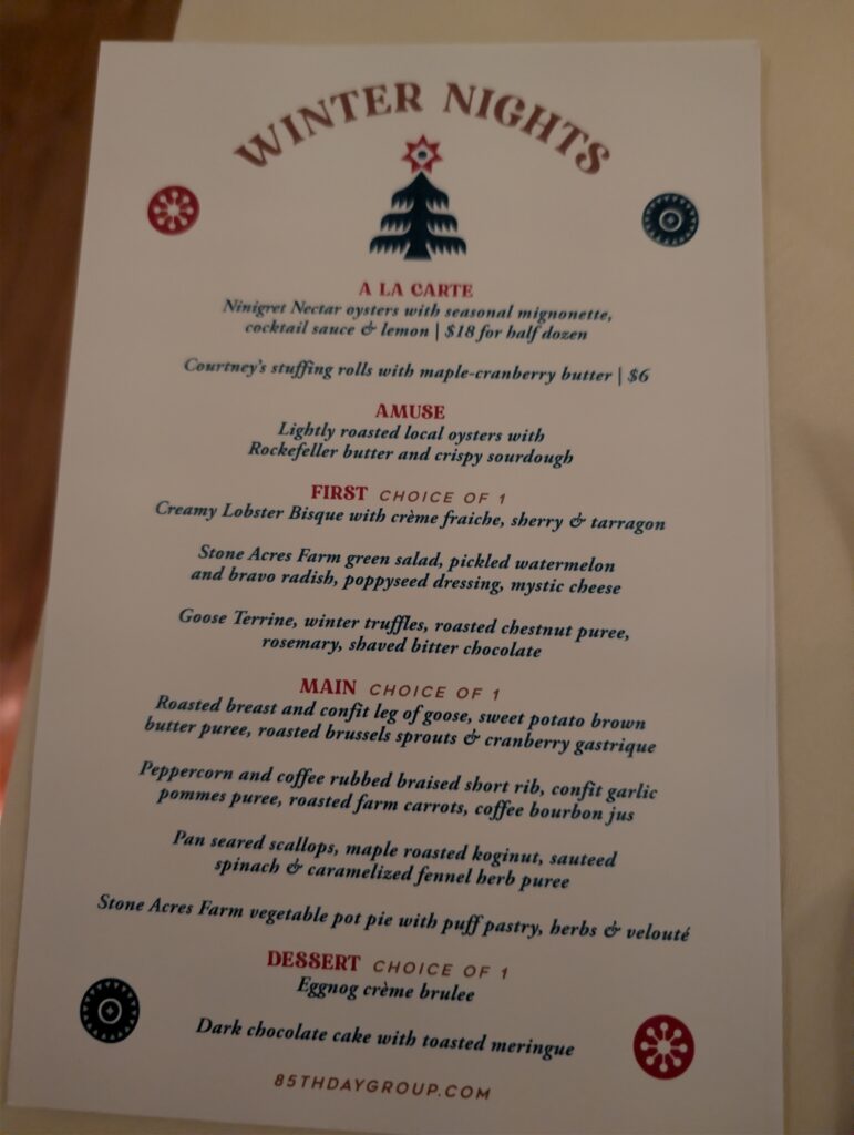 Dining at Stone Acres Farm was a truly memorable experience. The grounds are stunning—a beautiful, functional farm that was decorated beautifully for Christmas, creating an atmosphere that was upscale yet intimate and cozy.