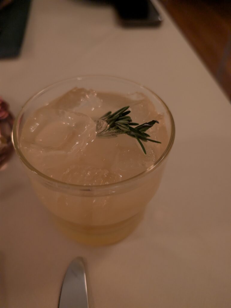 For drinks, the Goldfinch cocktail (with ginger and cider notes) was excellent, as was the Pinot Noir. The meal progressed perfectly: