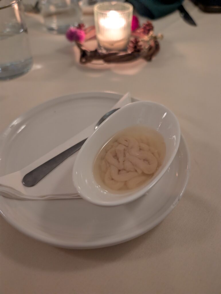 We started with a Crimini mushroom broth that was packed with umami flavor—the perfect way to warm up from the cold. The staff was incredibly friendly and knowledgeable, guiding us through the menu with ease.